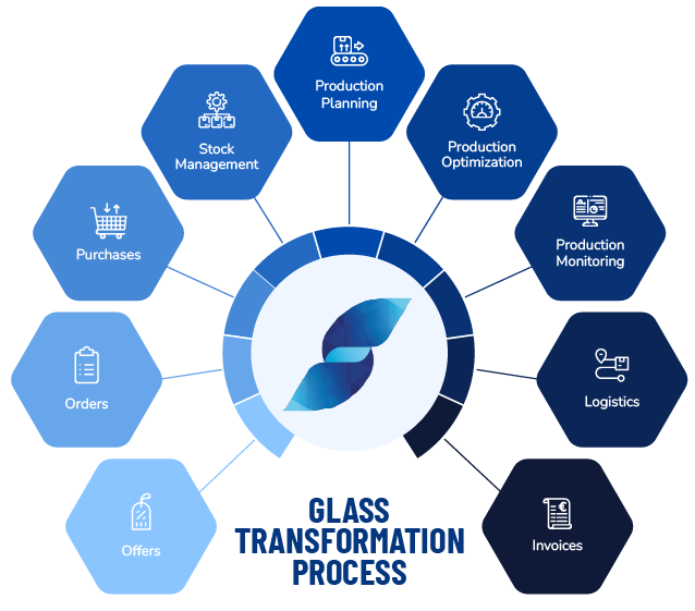 The comprehensive ERP system that centralises and manages all the processes involved in your glass processing business, providing you with a comprehensive overview, operational control and total oversight of your industrial performance.